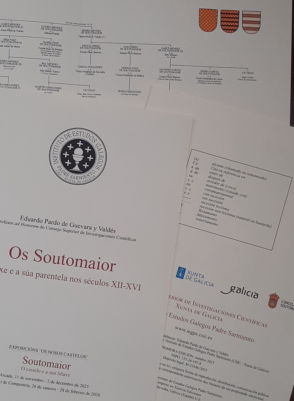 Onte, martes 11 de novembro, inaugurouse en Arcade, Soutomaior, a exposición sobre O castelo de Soutomaior, as súas orixes, historia, liñaxe e parentela nos séculos XII-XVI; na que participa Javier García Gómez, compañeiro da Asociación de Estudios Históricos de Galicia, como ilustrador de diferentes imaxes do castelo e elementos heráldicos expostos nos paneis. Poderase ver do 11 de novembro ao 2 de decembro de 2025.